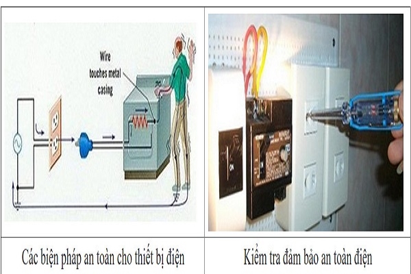 Khi lắp đặt dụng cụ, máy móc hoặc thiết bị điện trong nhà phải thực hiện đúng hướng dẫn của nhà chế tạo, nên nối đất an toàn cho vỏ thiết bị như máy bơm nước, bình đun nước nóng bằng điện, lò vi sóng, máy giặt, tụ lạnh… và thường xuyên kiểm tra các thiết bị, dây dẫn điện nếu bị hư hỏng phải sửa chữa, thay thế ngay để người sử dụng không chạm phải các phần dẫn điện gây tai nạn điện.