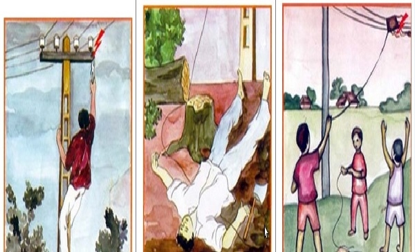 Không tới gần hoặc đưa bất cứ vật gì đến gần đường dây điện cao áp trong phạm vi 02 m như: Leo lên mái nhà, ban-công, ô-văng; đưa tấm tole, thanh kim loại… gần đường dây điện để đề phòng điện giật hoặc điện cao áp phóng chết người.
