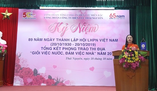 Trong không khí phấn khởi và tự hào của phụ nữ cả nước kỷ niệm 89 năm ngày thành lập Hội LHPN Việt Nam (20/10/1930 - 20/10/2019). Công ty Điện lực Thái Nguyên (PC Thái Nguyên) tổ chức buổi lễ mít tinh kỷ niệm và tổng kết phong trào “Giỏi việc nước, đảm việc nhà” năm 2019.