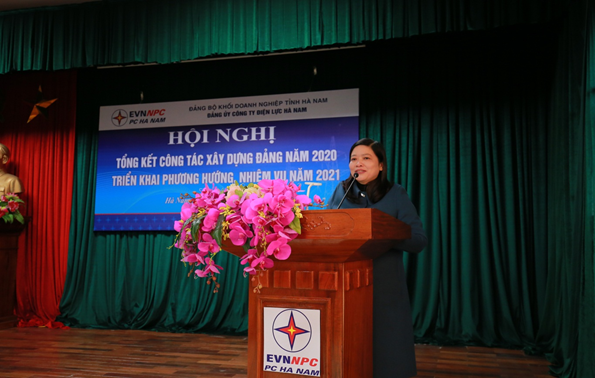 Phát biểu chỉ đạo tại hội nghị đồng chí Nguyễn Thị Nhung ghi nhận và đánh giá cao những kết quả Đảng bộ Công ty Điện lực Hà Nam đạt được trong năm qua, yêu cầu trong năm 2021, Đảng bộ Công ty tiếp tục rà soát các chỉ tiêu đã đề ra, để có biện pháp đẩy mạnh thực hiện trong thời gian tới; triển khai hiệu quả các Chỉ thị, Nghị quyết của Đảng; thực hiện tốt công tác an sinh xã hội, xây dựng văn hóa doanh nghiệp, phấn đấu hoàn thành thắng lợi nhiệm vụ đề ra.