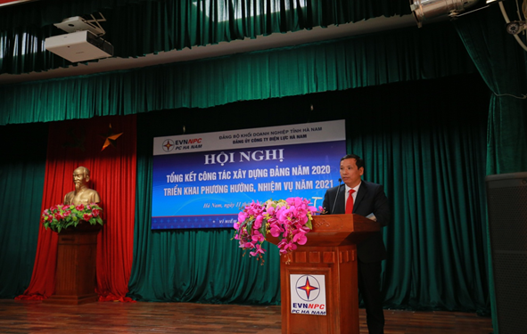 Tại Hội nghị, đồng chí Nguyễn Văn Minh – Phó Bí thư Đảng ủy Công ty đã trình bày dự thảo báo cáo tổng kết công tác xây dựng Đảng năm 2020 và phương hướng nhiệm vụ năm 2021. Theo đó, năm 2020, Đảng ủy đã chỉ đạo, lãnh đạo Công ty thực hiện tốt nhiệm vụ đảm bảo cung cấp điện an toàn, tin cậy đáp ứng nhu cầu sử dụng điện phục vụ phát triển kinh tế xã hội, an ninh quốc phòng và đời sống, sinh hoạt của nhân dân trên địa bàn tỉnh Hà Nam. Đặc biệt trong bối cảnh dịch bệnh năm 2020, ban lãnh đạo Công ty đã nhanh chóng, kịp thời xây dựng kế hoạch, thành lập ban chỉ đạo phòng, chống dịch Covid-19, đồng thời hướng dẫn, tuyên truyền đến CBCNV trong Công ty phòng, chống dịch bệnh theo quy định của Bộ y tế, chỉ đạo xây dựng phương án cấp điện và xử lý sự cố nhanh cho bệnh viện, cơ sở y tế, khu vực cách ly để phục vụ công tác phòng chống dịch Covid-19.