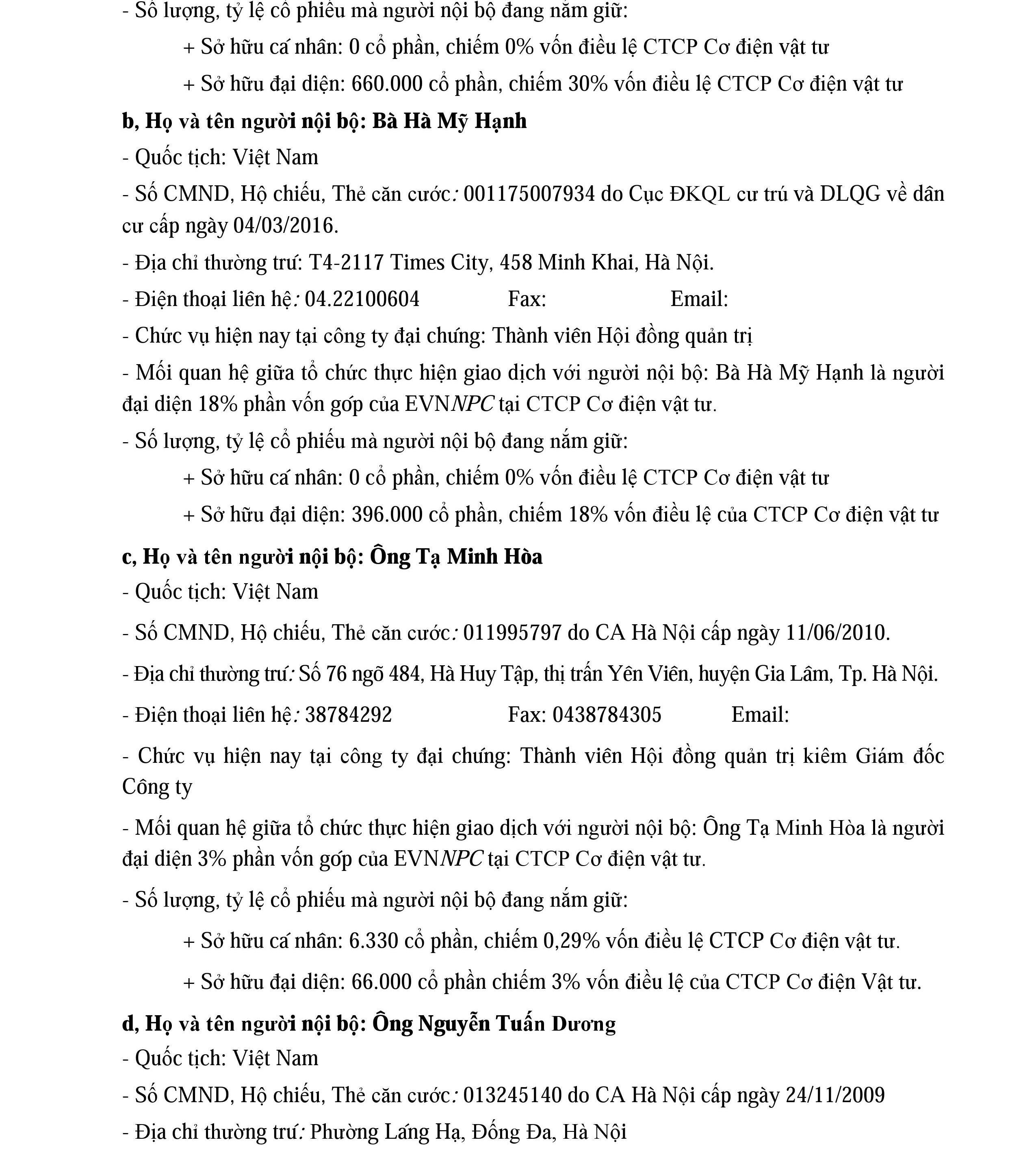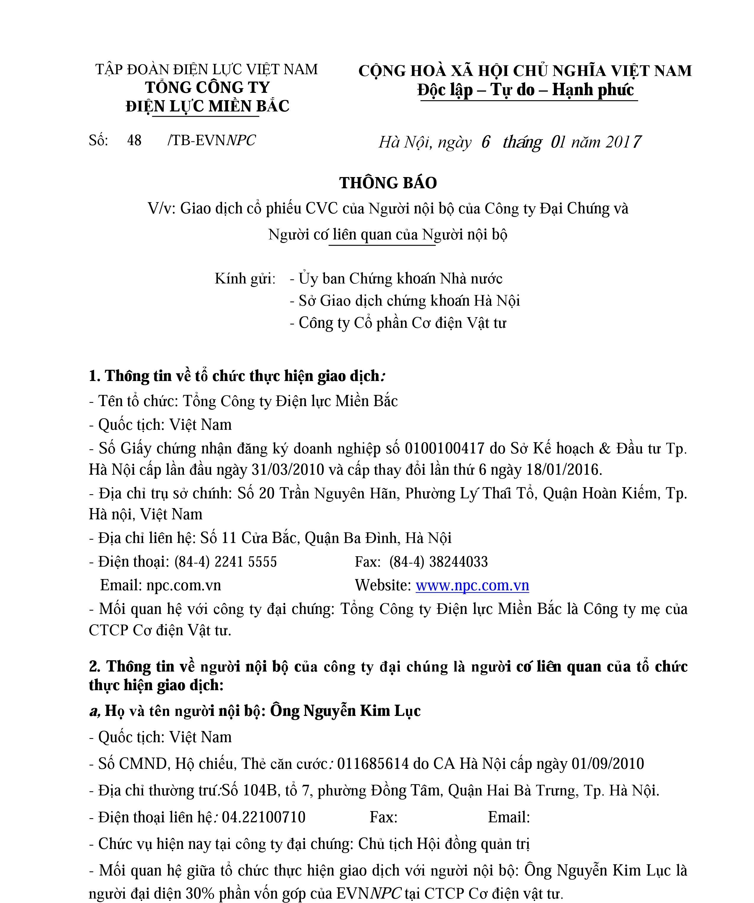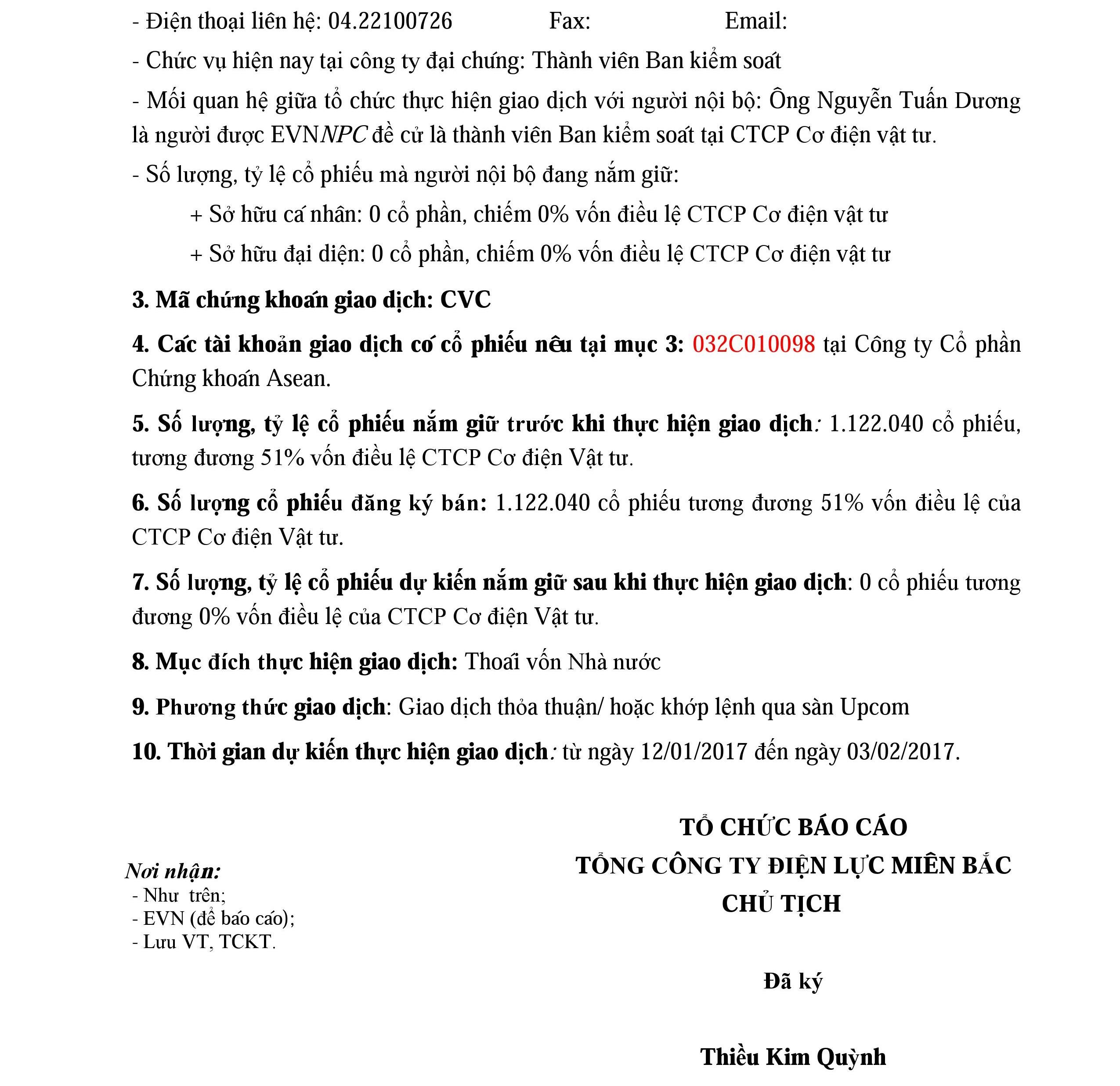 Thông báo không tổ chức phiên bán cổ phần của CTCP Thiết bị điện miền Bắc do Tổng công ty Điện lực miền Bắc sở hữu