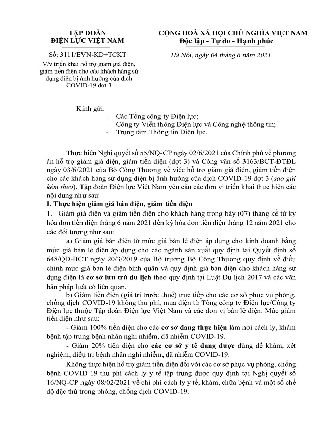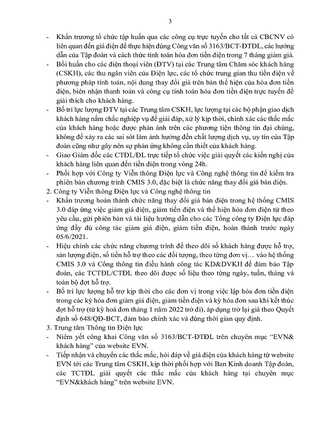 Tổng công ty Điện lực miền Bắc hướng dẫn các đơn vị triển khai thực hiện về việc hỗ trợ giảm giá điện, giảm tiền điện đợt 3